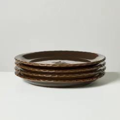 Set Of 4 6.5″ Mushroom Ceramic Appetizer Plates Forest Brown – Hearth & Handâ„¢ With Magnolia