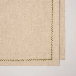 Set Of 4 Embroidered Border Cloth Napkins Natural/Green – Hearth & Handâ„¢ With Magnolia